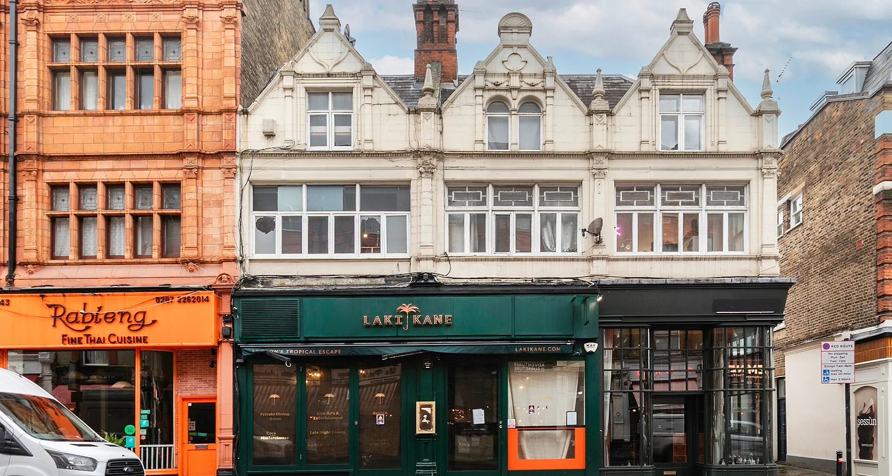 The premises occupy the ground, mezzanine, first and second floors of a characterful mixed-use three-storey building, formerly home to the Laki Kane cocktail bar. The ground floor benefits from a wide glazed frontage with bi-fold doors, providing excellent natural light. The mezzanine floor accommodates WCs, while the first floor includes a kitchen fitted with fridges and freezers. The second floor provides ancillary office accommodation and storage space. Late licence Thursday to 1.30 a.m. and Friday and Saturday to 2.30 a.m.